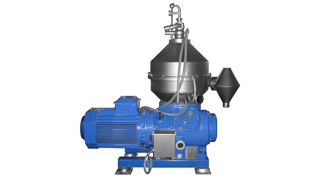 The BRUX disc-type bowl is equipped with concentrate tubes leading to vortex nozzles. The gravitational force of the bowl forces the yeast (solids phase) outwards into solids pockets at the periphery of the bowl and, from there, through the concentrate tubes and internal vortex nozzles into a paring tube chamber. Once in the chamber, the concentrate is skimmed off by the paring tube and discharged from the separator under pressure. The liquid phase is clarified as it passes through the disc-stack towards the centre of the bowl from where it is discharged under pressure by a paring disc pump at the top of the frame hood.